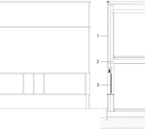 Die Außenschale wird bis zur Oberkante der Attika hochgeführt. Aufgrund der notwendigen Steifigkeit bei Transport und Montage nimmt die Schalendicke im oberen Decken- und Attikabereich zu.
