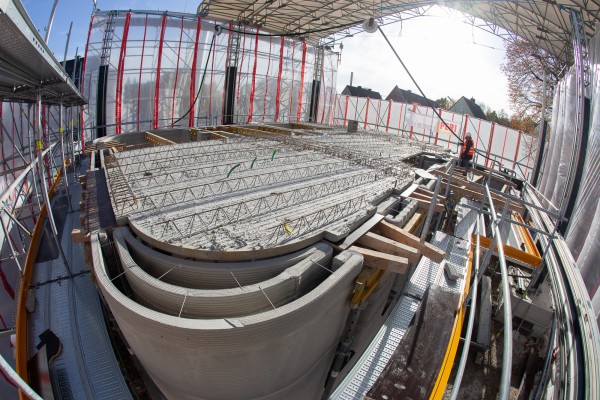 In Beckum wurde das erste 3D-gedruckte Wohnhaus Deutschlands realisiert. Aber nicht nur die Art und Weise der Wandherstellung ist bei diesem Haus hoch innovativ. Auch das zum Einsatz kommende Heiz- und Kühlsystem in teilvorgefertigten Elementdecken zeigt in Kombination mit der Verwendung erneuerbarer Energien anschaulich die Zukunftsorientiertheit des Objekts.