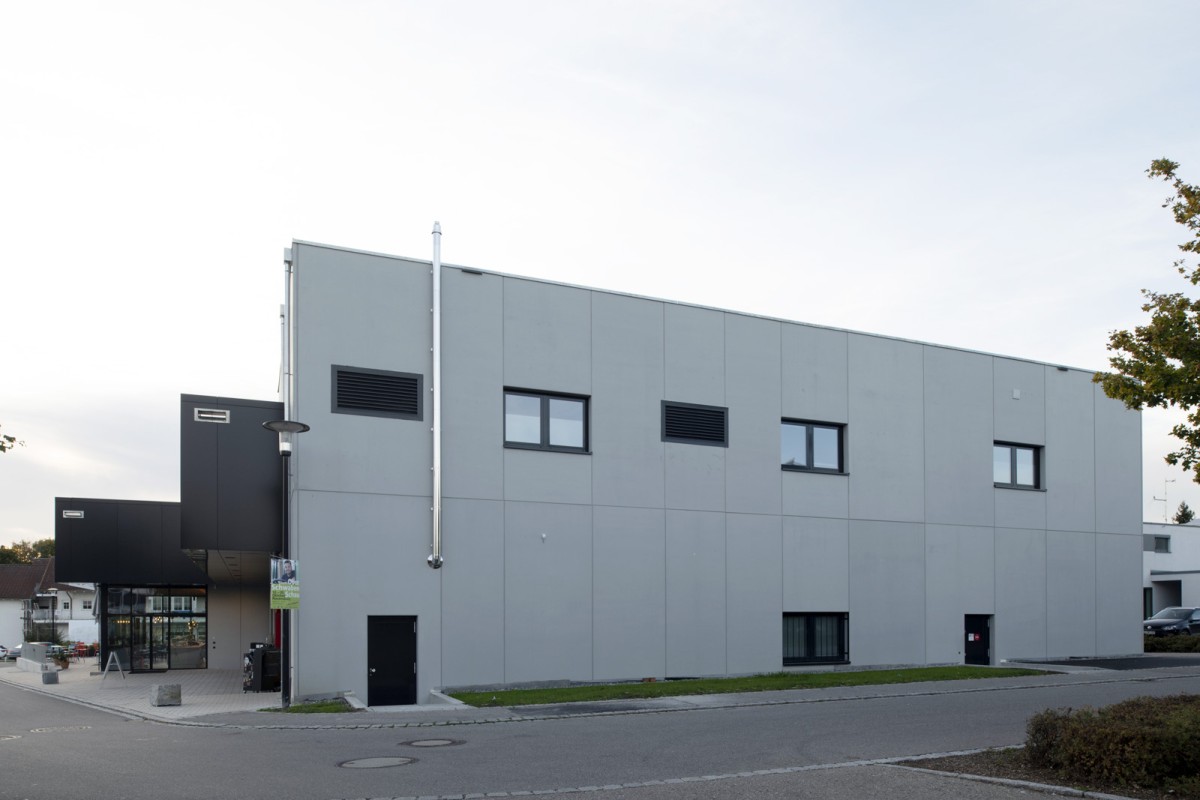 Die Firma Rinninger wurde mit der Herstellung der Betonfertigteile beauftragt. Es wurde eine Kombination aus 750 qm Thermowand und 70 qm Doppelwand gewählt. Montiert wurde das Objekt von der Firma Euperle aus Vogt in Absprache und Koordination mit der Firma Rinninger.