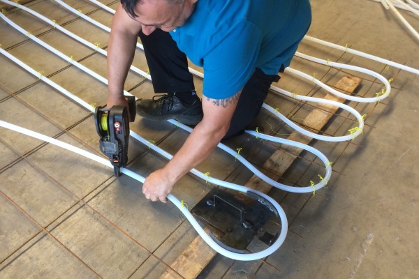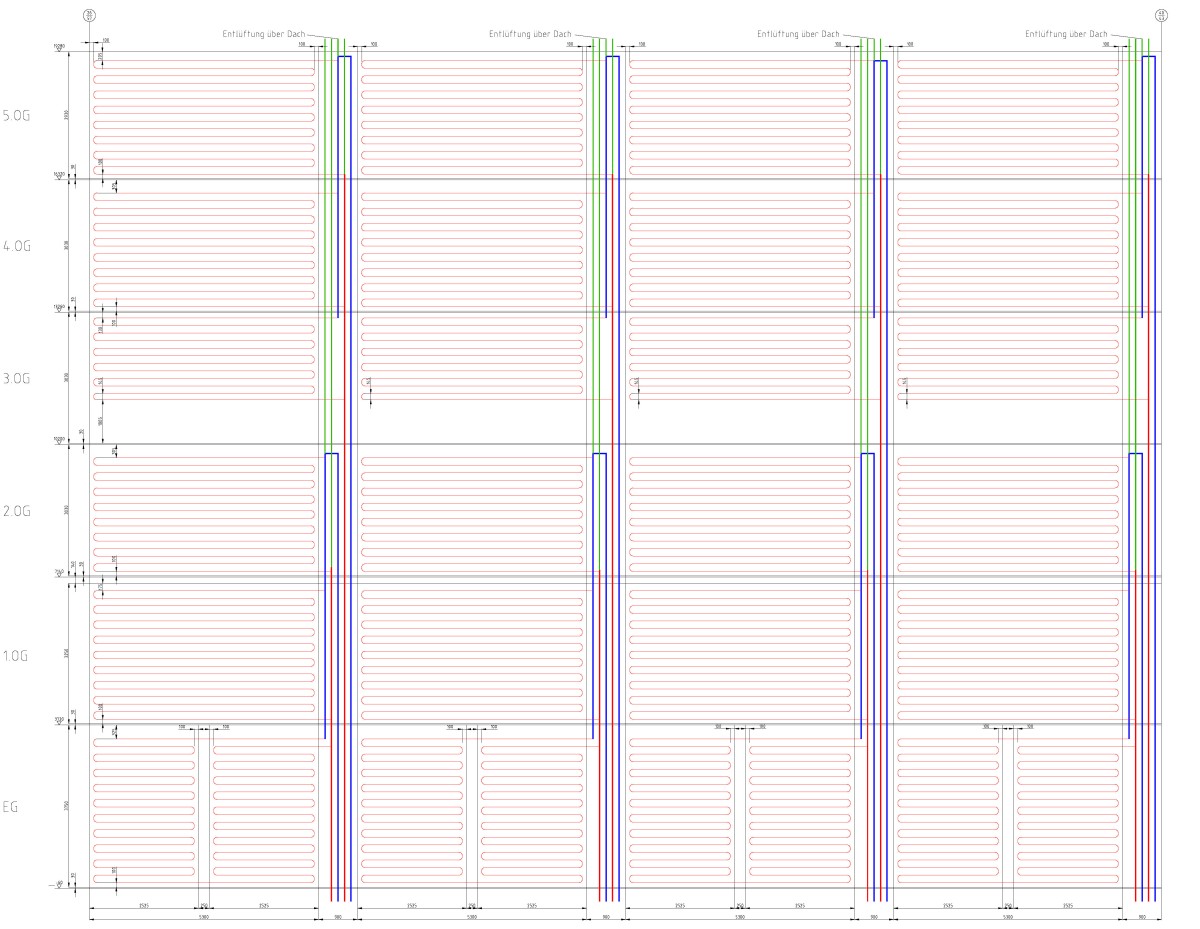 Rohrverlegungsplan für die Hüllflächentemperierung der südlichen Fassade (Grafik: Uponor)