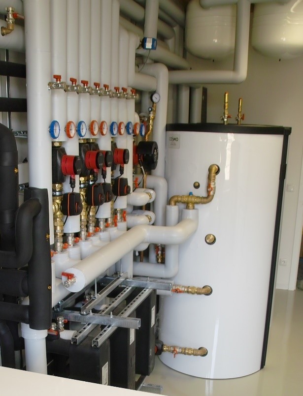 Um das System aus aktivierten Betonteilen und Wärmepumpe noch effizienter zu gestalten, untersuchte das Unternehmen Ragano verschiedene auf dem Markt erhältliche Wärmepumpen. Bei ihrer intensiven Recherche stieß die Firma Ragano auf ein neues Wärmepumpensystem, das die Vorteile der drei Energiequellen Luft, Sonne und Erdwärme in einem Gerät kombiniert. Das Wärmepumpen-Hybridsystem „ThermSelect“, eine gemeinsame Entwicklungsarbeit der Unternehmen KuK Energietechnik und MHG Heiztechnik, kann jederzeit direkt und parallel auf die regenerativen Energiequellen Luft, Sonnenstrahlung und Erdwärme zugreifen. Das Ergebnis ist ein COP von 5,0. Die für den Einsatz in Ein- und Mehrfamilienhäusern konzipierten „ThermSelect“-Geräte sind auch mit einer passiven Kühlfunktion ausgestattet, sodass sich bei sehr hohen Lufttemperatur die natürliche Erdkühle zur Senkung der Temperaturen im Gebäudeinneren einsetzen lässt. Mithilfe der effizienten Wärmepumpen-Hybridtechnologie und der gesammelten Ergebnisse des Monitorings aus dem Förderprojekt der Firma Ragano, entwickelte Ragano ein auf solche Heizsysteme abgestimmtes Betriebskonzept. Dieses ermöglicht den optimalen Betrieb der gesamten Anlage, denn Installateure können sie exakt auf die individuellen Bedürfnisse ihrer Kunden einstellen und die lokalen Gegebenheiten optimal nutzen. Erste Projekte, bei denen das Gesamtsystem aus aktivierten Betonbauteilen und Hybrid-Wärmepumpe zum Einsatz kommen soll, sind schon in der Planung. Hierbei zeigen sich die wirtschaftlichen Vorteile des Systems, denn die üblicherweise erforderlichen Pufferspeicher können entfallen.