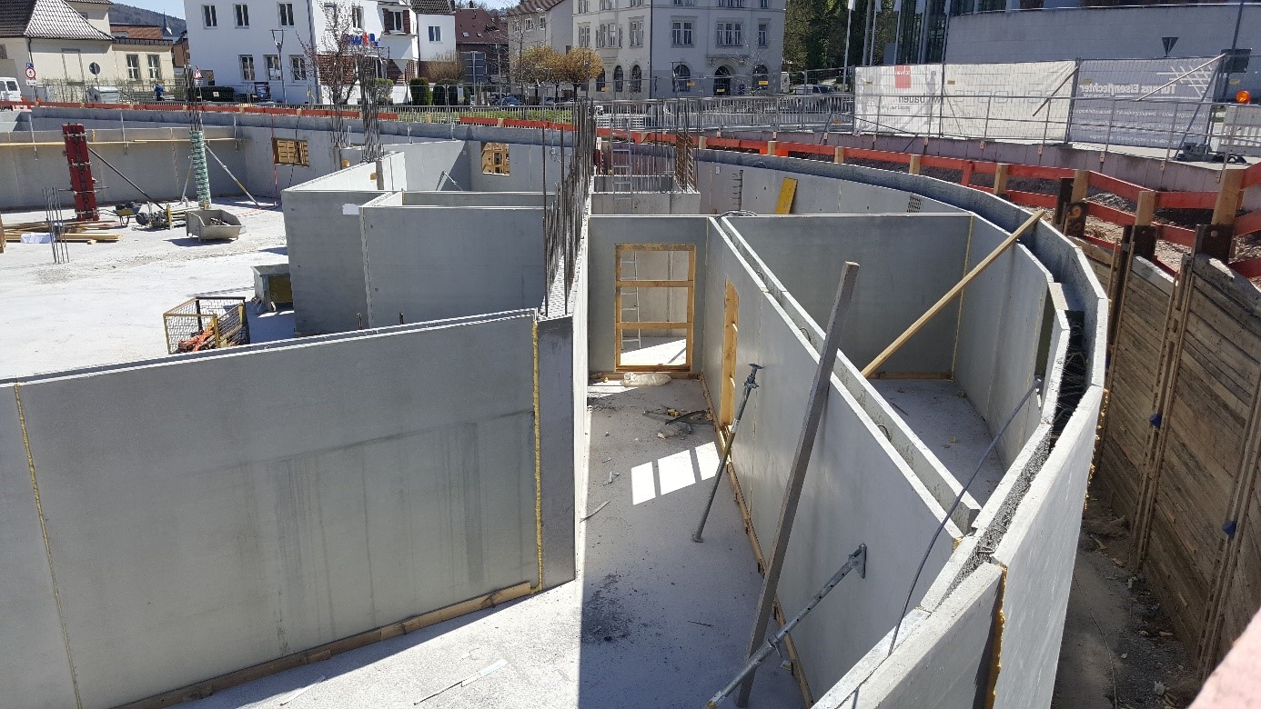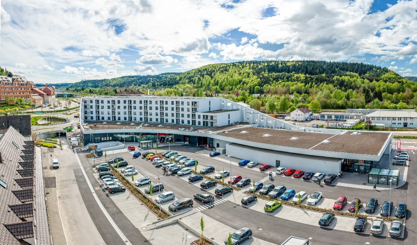 Am Aesculap-Platz in Tuttlingen steht seit wenigen Monaten ein großes, frisch fertiggestelltes Wohn- und Geschäftshaus. Für die Ausführung der Decken und Wände wählte der Bauherr Betonfertigteile der Egon Elsäßer Bauindustrie GmbH & Co. KG.