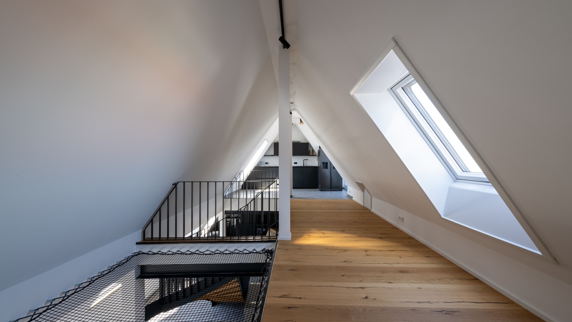 Die obere Etage im Dachstuhl des Hauses führt auch auf die Dachterrasse. Foto: Michael Mesick