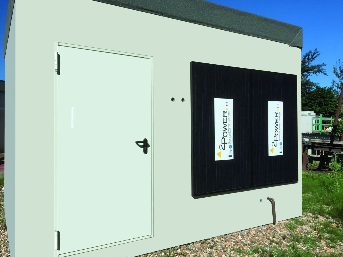 Kasko-Südansicht, also die aktivierte Betonfassade als solarer Massivabsorber ergänzt um 2 Photovoltaik-Module